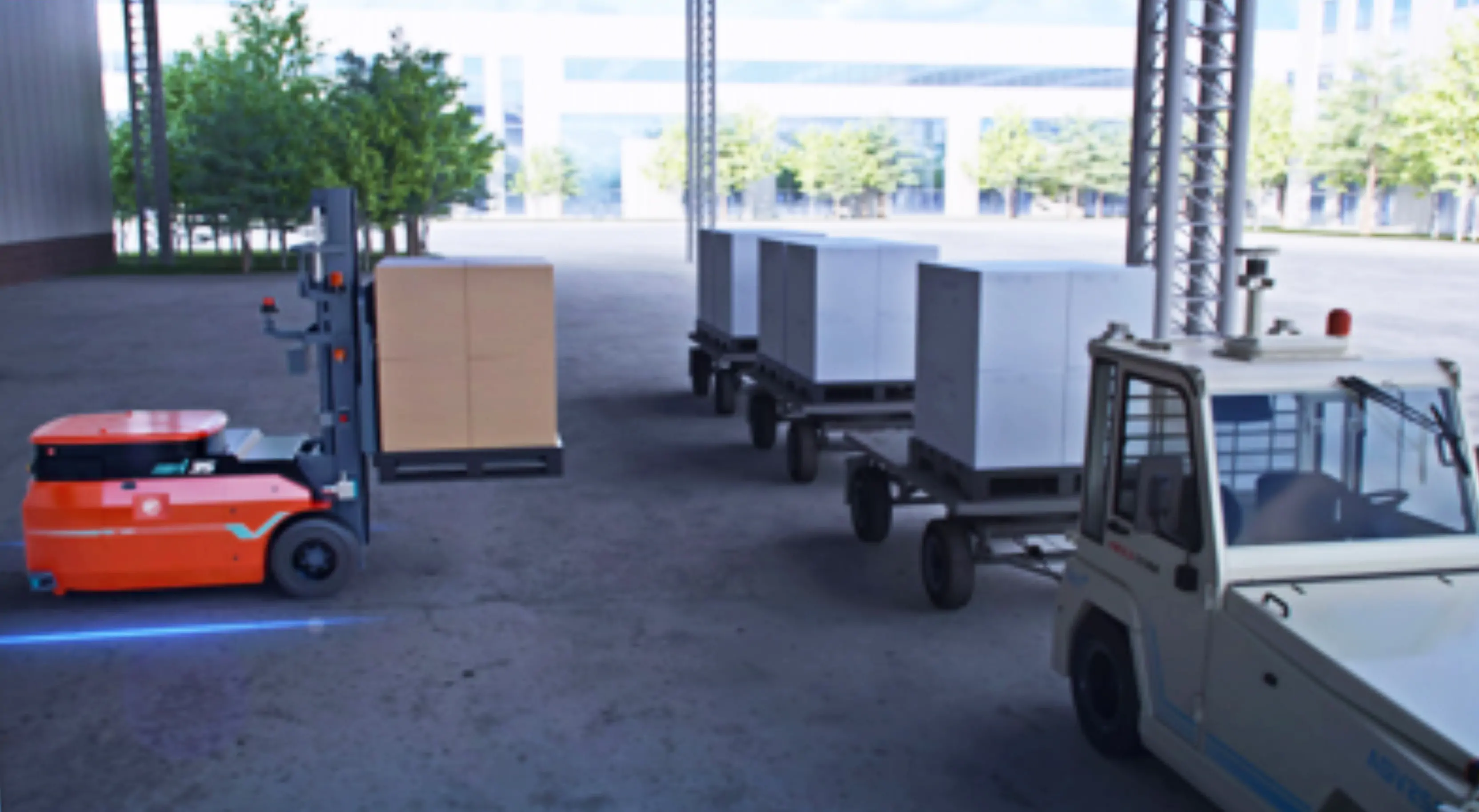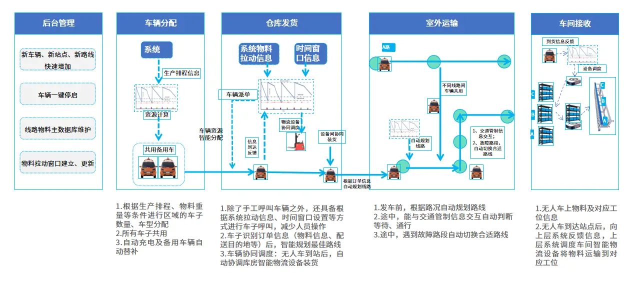 系统拥有高安全冗余设计,确保室内外物流运输的安全与效率,为场间物流运输带来了更高的安全性和效率,广泛应用汽车制造、新能源、石油化工、生物医药、食品饮料、工业生产等场景。