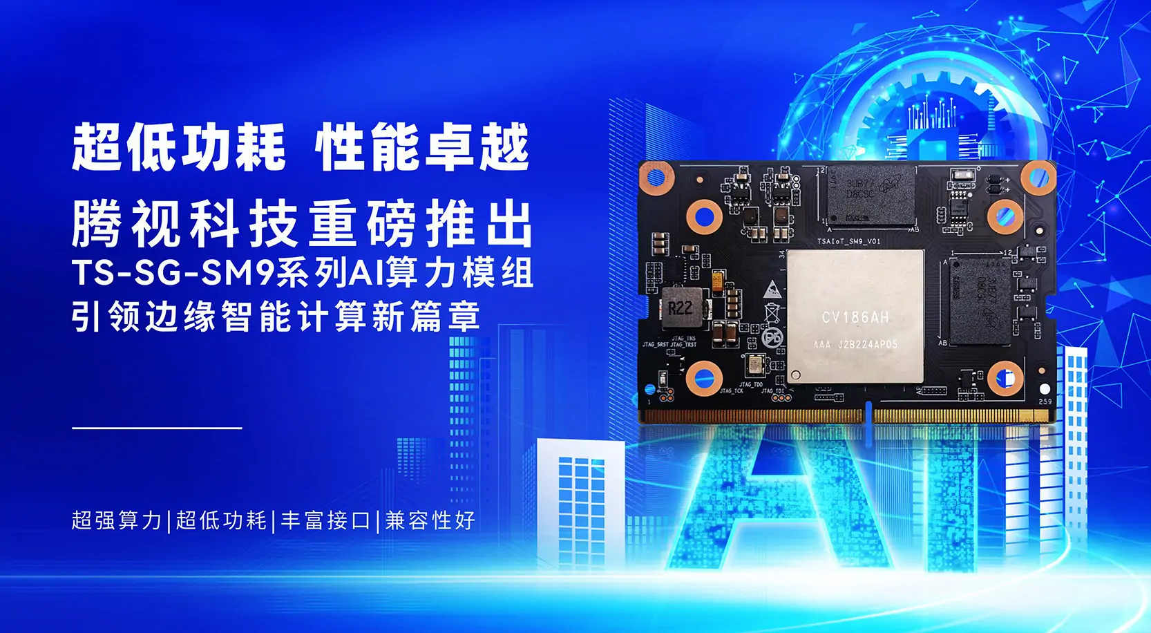 在人工智能技术蓬勃发展的当下,对高性能算力模组的需求愈发迫切。近日,腾视科技正式推出新一代AI算力模组TS-SG-SM9系列,该系列产品搭载算能高集成度处理器CV186AH/BM1688芯片,以超强算力、超低功耗和丰富接口为核心优势,为人工智能场景提供高效、灵活的算力支持,助力AI微服务器、AI边缘计算终端、工业控制、无人机及AIoT等终端领域实现智能化突破。