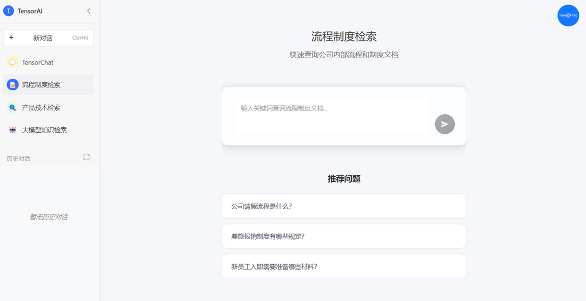 ▲TensorAI流程制度检索页面