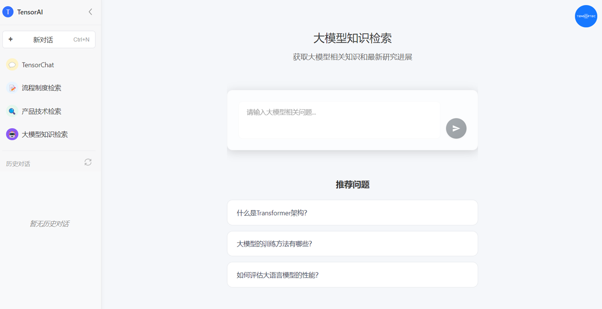 ▲TensorAI大模型知识检索页面