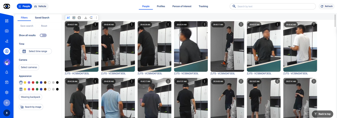 核心能力拉满:支持人、车、物实时识别报警,无论是园区安防中 “陌生人闯入预警”,还是商超管理里 “重点商品异动监测”,都能快速响应;同时具备 “文搜图、图搜图” 功能,输入关键词(如 “红色货车”)或上传参考图片,即可从海量视频中精准定位目标,大幅降低人工检索成本。