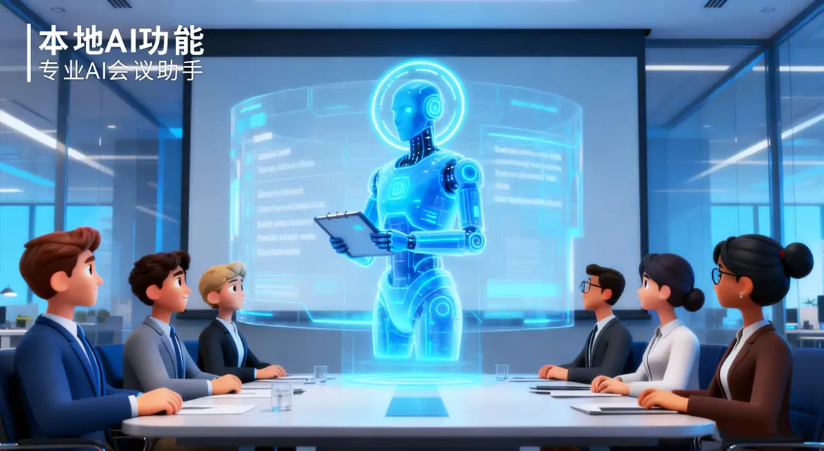 依托本地语音大模型,会议助手能够将会议中的语音内容精准转化为文字信息,并在此基础上提供丰富多样的二次AI处理功能,如生成专业的会议总结、编写详细的纲要、提供多语言翻译服务以及进行二次文字编辑与修改等。所有会议记录都将直接安全地存储在设备上,授权访问人员即可在线查看,极大地提升了会议记录的管理与利用效率。