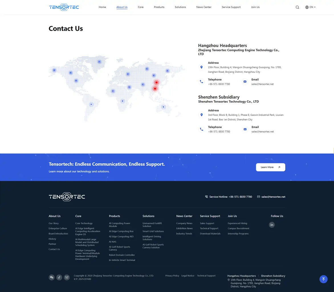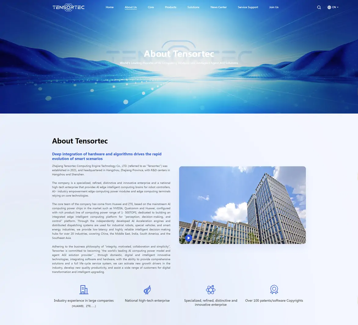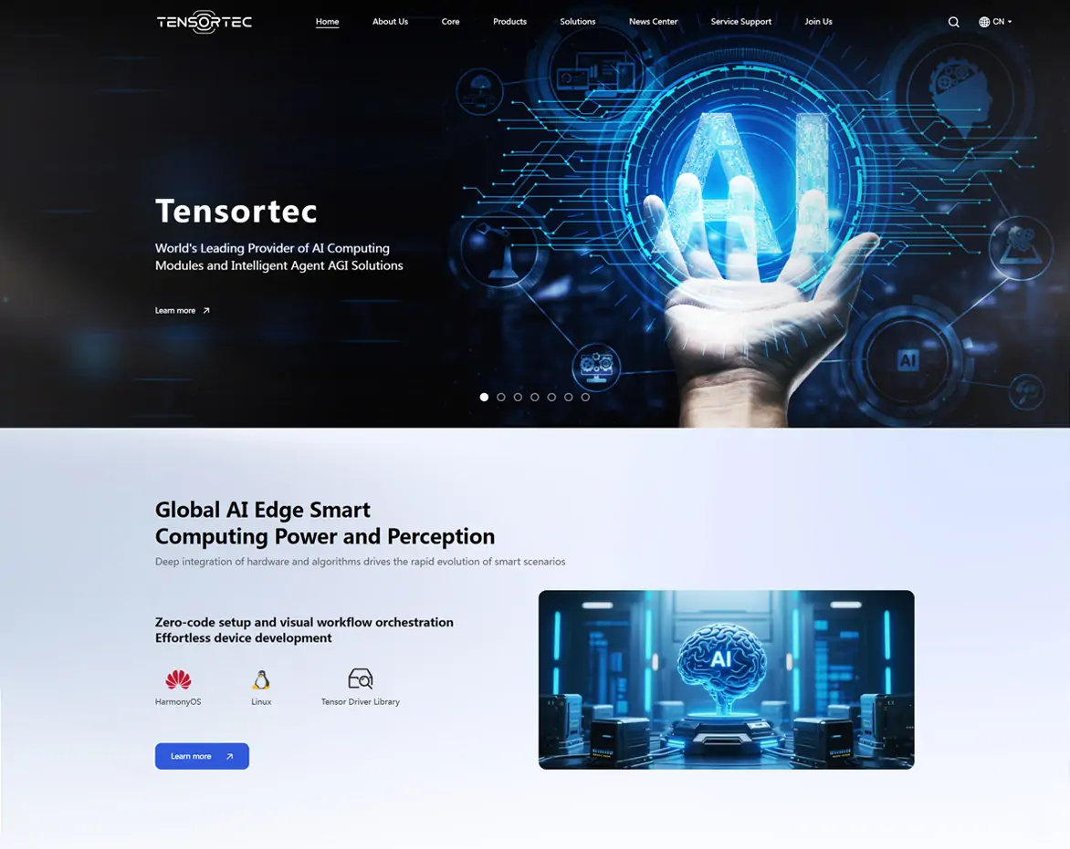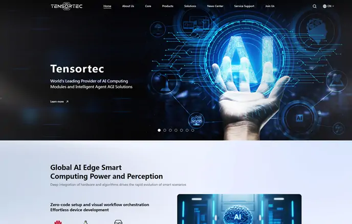 From AI computing power modules to full-stack intelligent solutions, from technology research and development to scene implementation, TENSORTEC has always positioned itself as a "pioneer in the implementation of cutting-edge technologies", facilitating the intelligent upgrade of industries. The launch of our new official website marks a new starting point for our dialogue with the world. In the future, we look forward to joining hands with more partners to use the power of AI to create a new intelligent future together!