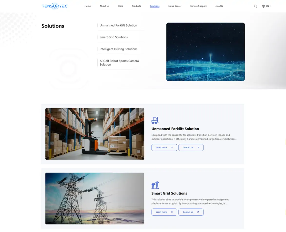 Having been deeply involved in the industry for many years, TENSORTEC has developed multiple customized solutions for pain points in different fields, which are clearly presented in the "Solutions" section of the new official website