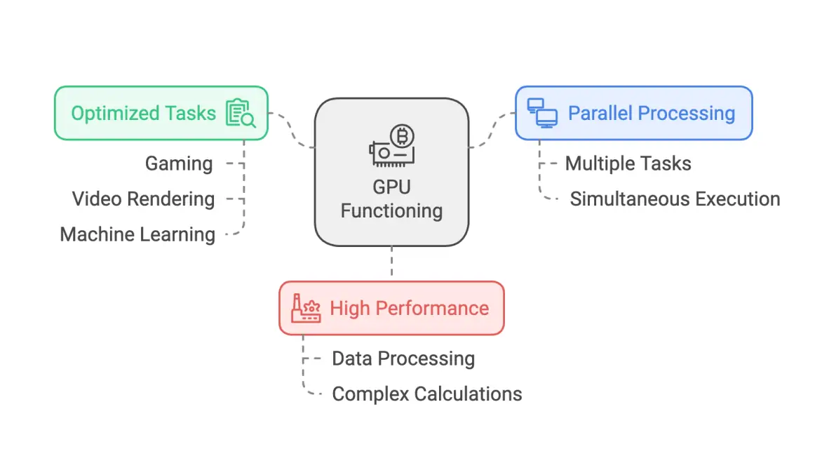 核心定位:最初为图形渲染设计,如今成为AI训练与并行计算的“主力”,擅长同时处理数千个简单任务(如像素计算、矩阵运算),是深度学习的“基础设施”。