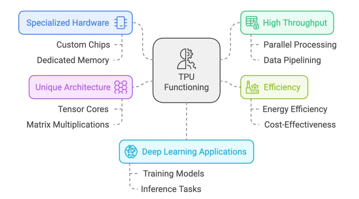 核心定位:Google专为机器学习打造的专用芯片(ASIC),聚焦张量运算优化,是其搜索引擎、大模型训练的“幕后推手”,2025年推出的Ironwood TPU v7算力达4,614 TFLOPS。